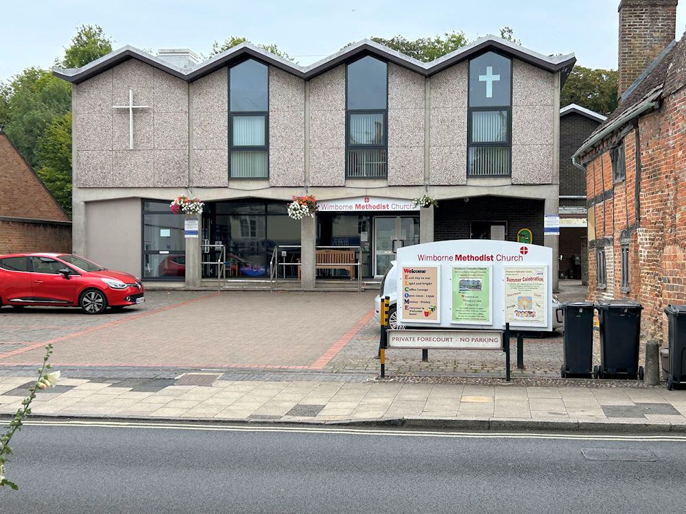 Elim Pentecostal Church on Leigh Road. It was seen by Streetview in 2021. SZ 0155 9983. Link. Good News Church meets at Queen Elizabeth's School on Blandford Road. It can be seen here on a Streetview of 2011. ST 9978 0074. Link. The Methodist Church stands on King Street. Old maps show a Wesleyan Chapel on the same site. SU 0098 9986. The church website history page, which has photos of the old chapel, dates the Wesleyan Chapel to 1869-1966, and the present building to 1967. © Karel Kuča (2025). The Minster is dedicated to St. Cuthburga. SZ 0094 9993. From an old postcard in Steve Bulman's Collection. The following are all © Roger Hopkins - modern views - 1, 2, interior views - 1, 2, the blue-painted roof in the tower, the tomb of Magistrate Anthony Ettricke, and the bell-ringer. Another view, another of the interior, and the font, all © Peter Morgan (2017). Link. Grade I listed. The cemetery on Cemetery Road has two Mortuary Chapels. The more westerly of the two is labelled on old maps as Church of England (SU 0049 0050), the other as Nonconformist (SU 0053 0052). Both can be seen on a Streetview (looking north) from 2011. St. Catherine (R.C., 1933) on Leigh Road, as seen by Streetview in 2021. Link, and history page. St. John stands on Leigh Road and Legg Lane, and was seen by Streetview in 2018. SZ 0162 9983. Link. St. Margaret's Chapel was originally the chapel of a leper hospital. Its grade II* listing calls it the Chapel of St. Margaret and St. Anthony. Another view, and a plaque. SU 0041 0036. All © Karel Kuča (2011). Link. The town U.R.C. is on Chapel Lane, and was seen by Streetview in 2009. The church website dates it to 1846, on the site of earlier chapels. Older maps label it as Congregational. SU 0092 0039. Grade II listed.