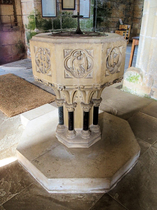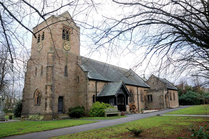 there was a predecessor which burned down in 1868. The churchyard war memorial