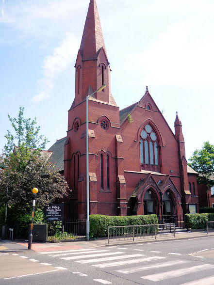Sacred Heart (R.C.) - see Salvation Army (below). The former St. Augustine of Hippo (1887-2007, CoE) on Tillard Avenue. Now closed, the congregation shared St. John's Methodist Church (see below) from 2007-2011, when it was known as St. Augustine's @ St. John's, but more recently the former parish has become part of St. Matthew in Edgeley (for which, see Edgeley). SJ 878 895. © Len Brankin. Mike Berrell advises that work has commenced (April 2017) to convert the church into flats, and managed to take some photos just before this started - two interior views - 1, 2, and the board listing churchwardens. All © Mike Berrell. St. John (Methodist and CoE) on Stockport Road. SJ 878 897. © Len Brankin. Another view. © Dennis Harper (2010).