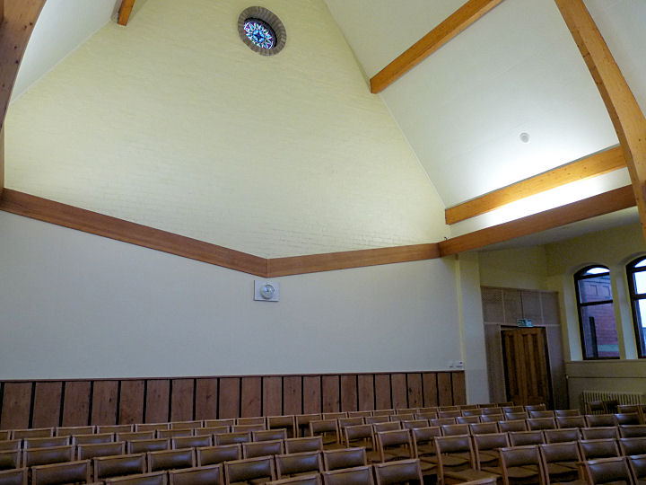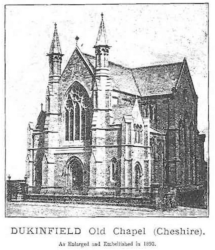 Crematorium and Cemetery Chapel, at Dukinfield Cemetery and Crematorium (Hall Green Road), opened 1866. Interior view. SJ 945 981. Both © Mike Berrell. Another interior view, © Mike Berrell (2010). Link. Dukinfield Baptist Church on Oxford Road. SJ 948 977. © Mike Berrell. Two interior views- 1, 2, both © Mike Berrell (2012). Dukinfield Congregational Church on Crescent Road. Another view (from Zetland Street). (SJ 942 981. © Mike Berrell (2010). Opened in 1972 (plaque), there was a previous church - the foundation stone from 1911 is preserved in the present church. Three interior views - 1, 2, 3. All © Mike Berrell (2015). Link. Dukinfield Methodist Church on Wellington Parade. The site was formerly occupied by the Bethesda New Connexion Chapel, dating from 1840. The linked website has some images of the previous church (follow "History"). SJ 939 982. © Mike Berrell. Two interiors - 1, 2, and a plaque recording the opening in 1978, all © Mike Berrell (2015). Link. The site of the now demolished Excelsior Mission Lodge on Lodge Lane. Visible between the houses, in the garden wall, is this stone from the building. SJ 951 975. © Mike Berrell. Moravian Church on Yew Tree Lane. SJ 952 970. © Mike Berrell (2011). Two interior views- 1, 2, both © Mike Berrell (2012). Link. Old Chapel (Unitarian, 1707) on Crescent Road. SJ 943 949. © Mike Berrell. Three interior views - 1, 2, 3, and a window, all © Mike Berrell (2011). An old engraving, © unitarian.co.uk. This, and many other old engravings on this website, are reproduced from the downloadable books on the Unitarian Church Headquarters website here. The books are Pictures of Unitarian Churches by Emily Sharpe (1901) and the 1914 edition of Nonconformist Church Architecture by Ronald P. Jones M.A, (Oxon), and the images are reproduced by kind permission of James Barry of Unitarian Church Headquarters. My appreciation also to Mike Berrell for his efforts in this regard. Grade II* listed - link. Old Hall Congregational Church on Dewsnap Lane. Mike says that there are plans to build a new church on the site. SJ 942 970. © Mike Berrell. Link. Mike advises that as of 2015, the new church remains un-built. St. Alban's Mission (CoE) on Park Road. SJ 946 983. © Mike Berrell. Mike advises that the Mission is no longer used for services, and is currently (2015) a drop-in centre for the homeless. St. John the Evangelist (CoE) on Oxford Road. Another view. SJ 952 978. Both © Mike Berrell. Three interior views- 1, 2, 3, all © Mike Berrell (2012). Link. St. Luke on King Street. SJ 940 975. © Mike Berrell. Three interior views- 1, 2, 3, and a memorial to the victims of the Munich Air Disaster, all © Mike Berrell (2012). St. Mark (CoE) on Church St. SJ 937 981. © Mike Berrell. Two interior views - 1, 2, a window, and a screen in memory of Kathy Staff (the actress, best known for her role as Nora Batty in Last of the Summer Wine). She was a life long member of St Mark's and sang in the choir. Link. St. Mary (R.C.) on Zetland Street dates from 1856. SJ 941 980. © Mike Berrell. Three interior views - 1, 2, 3. All © Mike Berrell (2010). Link. It was preceded by St. Mary on Astley Street. Opened in 1825, structural problems soon became apparent, caused by nearby mine workings, and after only 22 years it was demolished. Several other churches sprang from it, including St. Peter, Stalybridge, St. Paul, Hyde, and St. Anne, Ashton. The site of the church and its disused graveyard remains as a grassed area, and a plaque commemorates the church. Both © Mike Berrell (2014). Link. Tame Valley Methodist Church on Park Road closed in about 2008. SJ 950 982. © Mike Berrell.