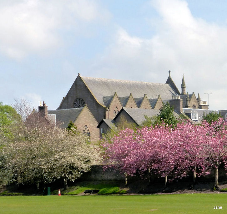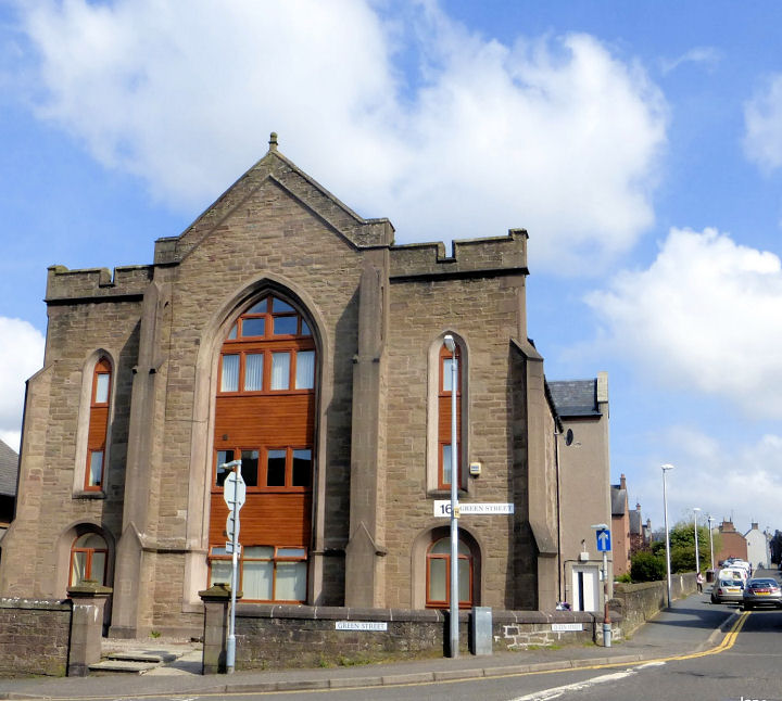 East and Old Church of Scotland (1790). Another view. See also the entry for East Free Church (below). NO 45712 50590. Both © Peter Morgan (2014). Another view, © Jane M. B. Scott, showing the steeply sloping graveyard. Grade B listed. The site of the demolished Forfar Baptist Church (1876) on Manor Street. Also used for many years by the Brethren, they continued after the Baptist congregation left, because of falling numbers. The Brethren carried on until forced to leave when the building became unsafe, and it was demolished in the 1980's. The church itself can be seen in this old photo, from "History of the Baptists in Scotland", by George Yuille, published in 1926. NO 4553 50802. Both © Jane M. B. Scott. The former East Free Church (1852). In 1901 it became East United Free Church, and Church of Scotland in 1929. It became surplus to requirements in 1978 when the congregation joined with the parish church, at which time it acquired its present name of East and Old Church of Scotland. It was subsequently used as a doctors surgery, but has since been converted into flats. NO 45827 50771. © Jane M. B. Scott. The demolished Forfar First Free Church on New Road. Built soon after the disruption in 1843, it was used until about 1880 when the congregation moved into a new and larger church (see St. Margaret below). It was subsequently used as a drill hall, and demolished circa 1960. NO 45537 50474. From an old postcard in © Jane M. B. Scott's Collection Lowson Memorial Church (1912-4) on Jamieson Street. Another view. Both © Peter Morgan (2014). Grade A listed. The former Roman Catholic Chapel on High Street. Having previously been a Masonic Lodge, the Catholics moved in in about 1940, until the mid 1960's when they moved to newly-built premises. From the early 1970's until 1992 it was a Bible Baptist Church. It is now flats. NO 45870 50666. © Jane M. B. Scott (2017). The former St. James (CoS, 1836) was built as a chapel of ease for Forfar Parish Church. It has been empty since a merger with West Church in 1977 (and for which, see St. Margaret, below). The Hall is in use as a gym. NO 45833 50554. © Jane M. B. Scott. St. John (Scottish Episcopal) on East High Street, © Peter Morgan (2014). Grade B listed. What is now St. Margaret (and formerly West Church of Scotland), was re-named following the merger with St. James, above, but it was originally First Free Church, built circa 1880. © Peter Morgan (2014). Another view, © Jane M. B. Scott. The former Secession Chapel (ca. 1780- ca. 1844). NO 46067 50696. © Jane M. B. Scott. The former United Presbyterian Church (ca. 1844 - ca. 1920), now in commercial use. It was successor to the Secession Chapel, above. NO 45367 50578. © Peter Morgan (2014). A plaque on a pillar shows that it's part of the town heritage trail. © Jane M. B. Scott.