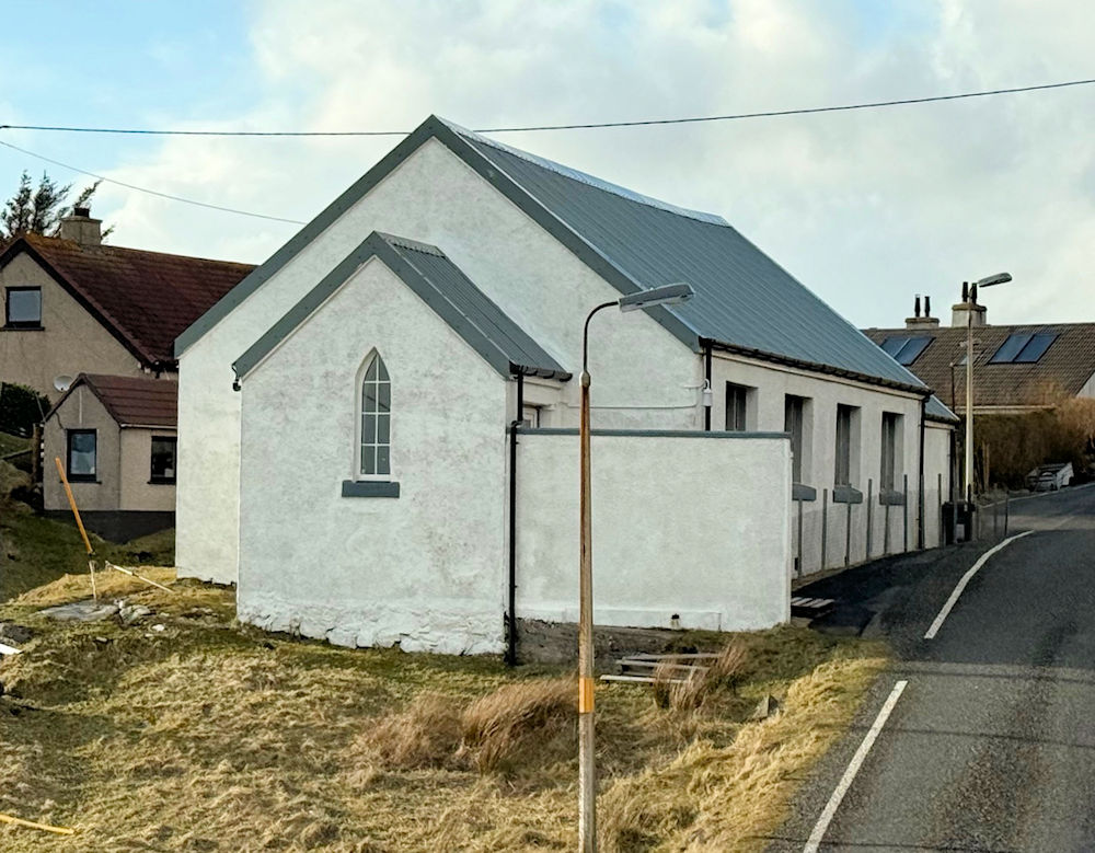 | Harris, Western Isles Amhuinnsuidhe, the former Mission Church, now converted to residential use. NB 045 083. It doesn't show on the 1903 OS map, so must date to between then and the early 1970's when it shows as Mission Church on the 1972/3 map. © Martin Richter (2013). Leverburgh, Church of Scotland. NG 020 868. © John Mackie. Another view, © Martin Richter (2013). From the photo (click it to enlarge) on this link, it is evident that the church was originally smaller. Current status uncertain - the church does not appear to be listed on the Church of Scotland Churchfinder website. Free Church of Scotland (1909). NG 021 868. © John Mackie. Another view, © Martin Richter (2013). Link. Free Presbyterian Church of Scotland. NG 022 865. © Martin Richter (2013). Link. Manish, Church of Scotland (the building to the right). NG 1016 8915. © John Mackie. A 2026 CoS document was advertising the church for sale, dating it to 1853, and advising of its category B listing.