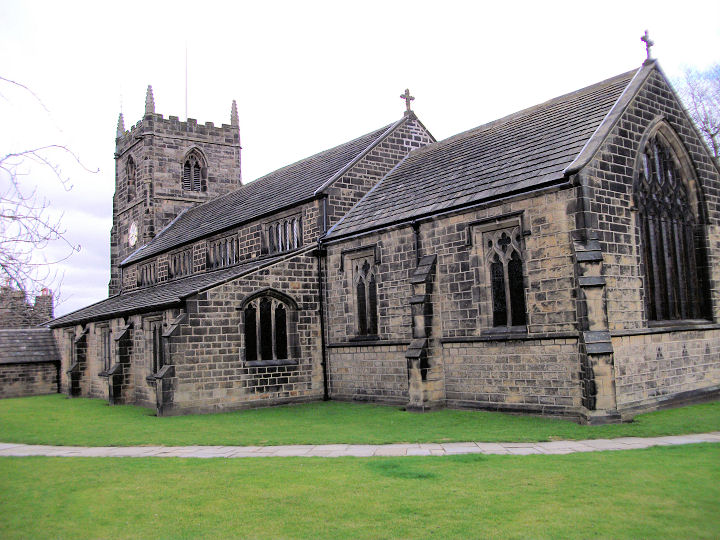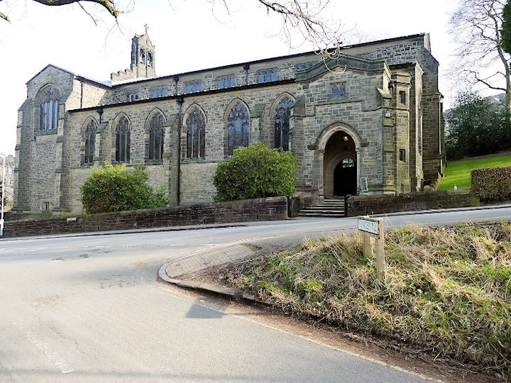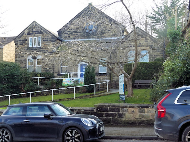 All Saints mostly dates from a re-build of 1860. SE 117 478. From an old postcard (franked 1908), in Steve Bulman's Collection. A modern view, and an interior view, both © Stan Walker. Another view, © Stuart Mackrell. Link. Grade II* listed. For related listed features see here. The Baptist Church is on Kings Road. SE 1126 4767. © David Regan (2025). Link - dates it to 1899. Ben Rhydding Methodist Church on Wheatley Lane and Ben Rhydding Road. SE 1342 4758. © David Regan (2013). Link. An earlier church shows on older maps a few yards further to the east, as Wesleyan. A 2024 Streetview shows the church at the right, and what I take to be the church hall to the left. This is, or is on the site of, the earlier church. Christchurch (Methodist and U.R.C.) on The Grove Promenade and Riddings Road was originally Congregational, of 1868. SE 1162 4759. © Alan Blacklock. Another view, © Stuart Mackrell. Link. Older O.S. maps mark a Congregational Hall on Dean Street at SE 1227 4804. It seem quite a distance from Christchurch, but may have been their church hall. None of the available maps mark it as a place of worship, but you may know better! Its site was photographed by © David Regan in 2025. The Octagon on Wells Road and Whitton Croft Road is a former First Church of Christ, Scientist Church. It's dated here to 1941. SE 1177 4754. © David Regan (2025). The Friends Meeting House is on Queens Road. SE 1165 4732. © David Regan (2025). Link - dates it to 1869. The cemetery on Cemetery Road has two former Mortuary Chapels - in this photo, left (southernmost) CoE, SE 1227 4831 (now Yoga Chapel), right Nonconformist, SE 1228 4833. Both are dated in their grade II listings to circa 1880 - CoE, Nonconformist. © David Regan (2025). The Old Wesleyan Chapel stands at the junction of Skipton Road and Bolton Bridge Road. It has a blue plaque which dates it to 1834-69. It was the predecessor of what is now Christchurch. SE 1134 4779. © Steve Bulman (2022). Link. It was succeeded by a new Wesleyan Chapel on Wells Road and Chantry Drive (SE 1173 4752) in 1869 (source, with architect's illustration). They left in 1969, moving into what had been their Assembly Hall, directly across Chantry Drive. The building barely survived a fire in 1974 (news report). This was their base until 1985, when they moved again, joining with the U.R.C. Church - see Christchurch above. It was subsequently converted to residential use, and it was seen by Streetview in 2024. SE 1173 4748. The 1869 church was demolished, and flats built on the site - 2024 Streetview. There used to be a Primitive Methodist Chapel on Leeds Road. Its site is now a small car park. SE 1192 4792. © David Regan (2025). Sacerd Heart of Jesus (R.C.). on Stockeld Road. SE 1122 4797. © David Regan (2025). Link is a good history, and dates it to 1879, with much alteration exactly a century later. St. John the Evangelist on Bolling Road. SE 1324 4761. © David Regan (2025). Link. St. Margaret on Queens Road. SE 1149 4725. © David Regan (2025). Link. Grade II* listed, wherein it's dated to 1878-9.