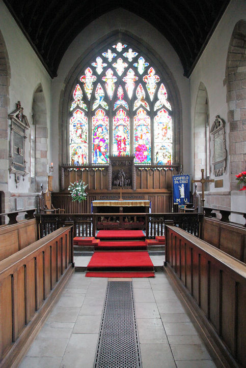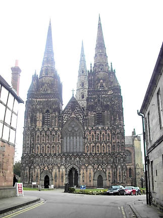 The Cathedral, dedicated to St. Mary and St. Chad. SK 1156 0977. From an old postcard in Steve Bulman's Collection. A modern view, © Peter Fowler. Another view, and an interior view, both © David Gallimore (2009). The reredos, from an old postcard in © Paul E. Barnett's Collection. Link. Grade I listed. See here for related listed features. Christ Church (2018 Streetview) on Christ Church Lane. SK 1087 0931. Link. Grade II* listed. See here for related listed features. Christadelphian Church on Station Road. SK 1215 0937. © Bruce Read. Link. Church of Jesus Christ of Latter-day Saints on Purcell Avenue. SK 1215 1092. © Bruce Read. Link. Emmanuel Christian Centre on Netherstowe. SK 1229 1070. © Bruce Read. By 2025 this had become Lifechurch - link. Holy Cross (R.C.) on Upper John Street. It pre-dates a map surveyed in 1882. SK 1193 0880. © Bruce Read. Link. The history page dates the church to 1803. Grade II listed. Kingdom Hall of Jehovah's Witnesses set back from Lombard Street, as seen by Streetview in 2020. SK 1200 0968. Lichfield Christian Church meets at Darwin Hall, seen by Streetview in SK 1081 0848. Link. Life Church (2023 Streetview) on Verdi Court. SK 1230 1070. Link. Methodist Church on Tamworth Street. This source says it was opened in 1892, as Wesleyan. SK 1193 0958. © Bruce Read. Link. An old Primitive Methodist Chapel survives on George Lane, at SK 1205 0971. It's dated here to 1848-1934, becoming a Salvation Army Hall in 1935. © Bruce Read. The old Quaker Meeting House on Stowe Street is of cruck construction. SK 1209 0991. © Bruce Read. Grade II* listed. Today the Friends meet in Martin Heath Hall (2020 Streetview), off Christ Church Lane. SK 1079 0932. Link. St. Chad on St. Chad's Road. SK 1220 1021. From an old postcard in Dennis Harper's Collection. Four modern views - 1, 2, 3, 4, three interior views - 1, 2, 3, the chancel, the organ and the font, all © Dennis Harper (2020). Link. Grade II* listed. St. John's Chapel on St. John Street. SK 1175 0919. © Bruce Read. Link. Grade I listed (includes the adjacent almshouses). St. Mary on Market Place, as seen by Streetview in 2021. As of 2025 Google Streetview is labelling it as "permanently closed". SK 1177 0955. Grade II* listed. St. Michael on Church Street. SK 1238 0951. © Bruce Read. Another view, © Peter Morgan. And another by © Aidan McRae Thomson. Link. Grade II* listed. For associated listed features see here. St. Peter and St. Paul (R.C.) on Dimbles Lane. SK 1160 1045. © Bruce Read. Link. Wade Street Church (U.R.C.), labelled on older maps as Congregational. By 2025 a Baptist congregation was sharing the church. Its grade II listing dates it to 1812. SK 1178 0939. © Bruce Read. Link.