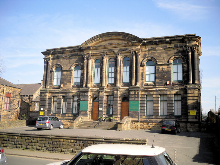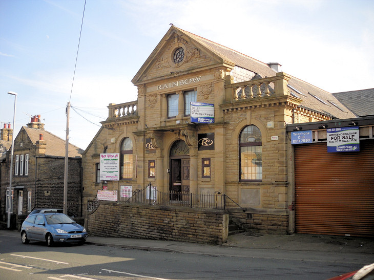 Churches in Bruntcliffe, Churwell, Gildersome. The derelict Bank Wesleyan Chapel. © Gerard Charmley (2012). Bruntcliffe Primitive Methodist Chapel on Howden Clough Road. © Gerard Charmley (2013). Baptist Tabernacle Chapel (1897). © Gerard Charmley (2012). Church of Christ. © Gerard Charmley (2012). Church of Jesus Christ of Latter-day Saints on Bridge Street. © Gerard Charmley (2013). Church of the Nazarene. © Gerard Charmley (2012). Ebenezer Primitive Methodist Church, with Sunday Schools. © Gerard Charmley (2012). The National Spiritualist Church was previously the Catholic Apostolic Church. © Gerard Charmley (2012). The former Primitive Methodist Chapel on Bridge Street. © Gerard Charmley (2013). Queen Street Wesleyan Chapel (1861). © Gerard Charmley (2012). Of the Rehoboth Chapel all that survives are the Sunday Schools. The parents of Herbert Asquith were worshippers here. © Gerard Charmley (2012). St. Francis of Assissi (R.C.) on Corporation Street. © Bill Henderson. St. Mary in the Wood Congregational Church. © Bill Henderson. Since Bill took his photo, the church has been destroyed by fire. Two further views - 1, 2, and an information board giving some history of this interesting church. The congregation now meet in the church hall. All © Gerard Charmley (2012). Grade II listed - link. The former St. Mary's Town Mission (Congregational) on Middleton Road. © Gerard Charmley (2013). St. Paul on South Queen's Street. © Gerard Charmley (2012). St. Peter on Victoria Road. © Bill Henderson. Salvation Army. © Gerard Charmley (2012). The former United Methodist Free Church, which appears to have been converted into flats. © Gerard Charmley (2012). Zion Independent Chapel on Zion Yard. Gerard advises that this was a splinter from Rehoboth in 1797. © Gerard Charmley (2012). The former Zoar Particular Baptist Chapel (1873) on Commercial Street, now called Unity Hall, and used by the Labour Party. This link says that it was called Zora Chapel (probably a typographical error) on a map of 1894. © Gerard Charmley (2012).