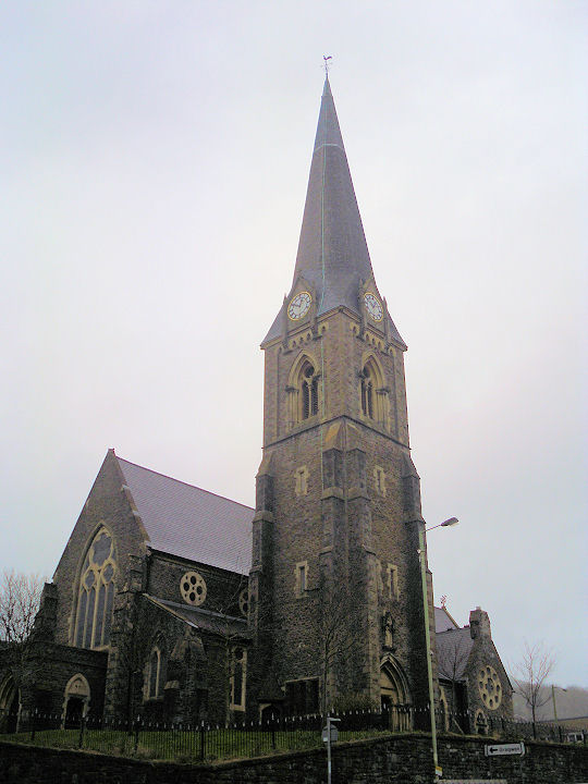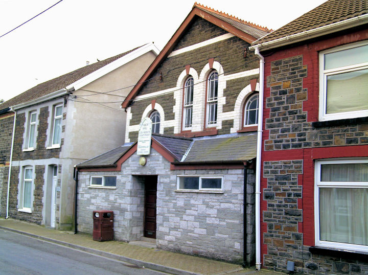 Pwllgwaun. Bethel Baptist Church at Hawthorn. © Gerard Charmley. The former Eglwys Bach Methodist Church, now a surgery. Gerard advises that Eglwys Bach refers to the Revd. John Evans, a very popular preacher in the 1890's. He was sent to the Glamorgan Collieries following the 1893 Cardiff Conference, and died in 1897 in Liverpool. © Gerard Charmley. Kingdom Hall of Jehovah's Witnesses on Sion Street. This was originally Capel Seion (Welsh Independent, 1870). ST 075 904. © Martin Richter (2012). The former Pontypridd Synagogue on Cliff Terrace. Judging by appearances, it may have had a previous chapel incarnation. ST 078 896. © Gerard Charmley. Howard Richter has advised of this link, which includes (under 1895) entries for the laying of a foundation stone and subsequent building of the synagogue, so my speculation that it may have had a previous existence is unfounded. There is a contemporary newspaper account of the opening ceremony here. It was "defunct" in 1973, and was sold off and converted into flats. There is an illustration of the building in 1986 here. In an earlier entry (for 1867) mention is made of a building converted to synagogue use, though where this was isn't mentioned. St. Catherine (Anglican). © Gerard Charmley. Link. St. David's Uniting Church (previously English Congregational). © Gerard Charmley. Sardis (Welsh Independent). © Gerard Charmley. The former Tabernacle Baptist Church (1861), now the town Museum and Art Gallery. Interior view. Both © Gerard Charmley. Temple Baptist Church (previously St. David's Presbyterian). © Gerard Charmley. Link. Wesley Chapel, in the town centre. © Gerard Charmley.