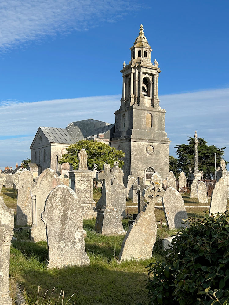 Easton Methodist Church, also home to the Salvation Army. The closer of the two buildings has a stone inscription saying "Wesleyan Schools 1878". SY 690 718. © Steve Bulman (2010). The ruins of St. Andrew, on the cliffs below Easton. Three further views - 1, 2, 3. SY 697 711. All © Steve Bulman (2010). Link. St. Andrew (1878), Southwell. SY 686 701. © Steve Bulman (2010). Another view, © Karel Kuča (2025). Link. St. George, Easton, now looked after by the Churches Conservation Trust - see link for opening times. SY 6866 7201. © Steve Bulman (2010). Another view, © Karel Kuča (2025). Link. Grade I listed, and see here for related listed features. St. John the Baptist at Fortuneswell. Hemmed in by mature trees, it is difficult to photograph well. The tower. A viewpoint further south allows another view, showing the rose window. SY 686 735. All © Steve Bulman (2010). St. Peter at Grove. Another view. SY 698 725. © Steve Bulman (2010). The former Salvation Army building on Victoria Place. Circa SY 692 721. © Steve Bulman (2010). Former Roman Catholic Church on Grove Road, Grove, now closed. SY 697 724. This is probably Our Lady and St. Andrew, mentioned in Pevsner, and if so, is of 1868. © Steve Bulman (2010). This Fortuneswell church, with the look of Non-conformity about it, was only seen from the viewpoint mentioned above (see St. John). SY 689 733. © Steve Bulman (2010). Another view, © Martin Richter (2012). Howard Richter has advised that this is Underhill Methodist Church, which was built as Wesleyan, and opened in 1899 to replace an earlier chapel. An old postcard (franked 1905) calls it Brackenbury Memorial Church. From Judy Flynn's Collection. Link. Former(?) U.R.C. on High Street, Chiswell. The Google Earth photo still shows a church notice board below the window, missing when I visited. © Steve Bulman (2010).