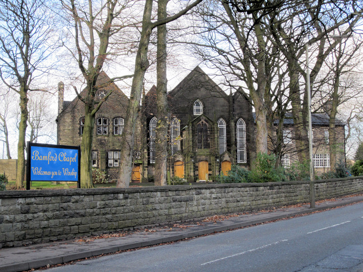 Rochdale, Greater Manchester Churches at Bamford, Belfield, Castleton, Healey, Newbold, Newhey, Norden, Spotland, Wardleworth. All Saints on Foxholes Road, Hamer. Interior view. Both © Mike Berrell. The following two are photos taken by Mike, of photos kept in the church, and reproduced with their kind permission. 1, 2. Grade II listed. The former Brethren Church on Nuttall Street, now in secular use. SD 902 132. © Mike Berrell. Chapel, Herbert Smith Funeral Director, on Sandy Lane. Interior view. SD 881 139. Both © Mike Berrell (2010). Church of Jesus Christ of Latter-day Saints, on Manchester Road. SD 893 125. © Mike Berrell. The former Congregational Church on Moore Street was sold in 2011. SD 898 131. © Mike Berrell. Grade II listed - link. Cutgate Particular Baptist Church (1845, re-built in 1881) on Edenfield Road, Cutgate. Interior view. A restrained and dignified memorial to the war dead. SD 876 140. All © Mike Berrell. Golden Mosque (under construction, 2008) on Mitchell Street. SD 890 135. © Mike Berrell. Hebron Pentecostal Church and Christian Centre on Falinge Road. SD 893 139. © Mike Berrell. Link. Holy Family (R.C.) on Mornington Road. Interior view. SD 900 111. Both © Mike Berrell. Link. Hope Particular Baptist Church (1810, extended 1848) on Hope Street. SD 897 139. © Mike Berrell. Three interior views - 1, 2, 3, all © Gerard Charmley (2017). Grade II* listed. Jamalia Jame Mosque on Trafalgar Street. SD 904 138. © Mike Berrell. Jamia Ghausia Mosque on Albion Road. SD 889 123. © Mike Berrell. Kirkholt Community Church (1959) on Daventry Road. SD 897 112. © Mike Berrell. Methodist Church on Jarvis Street, dating from 1887. SD 898 143. © Mike Berrell. Open Door Baptist Church, Horse Carrs, Shawclough Road. Two interiors - 1, 2. SD 889 145. All © Mike Berrell (2014). Link. Our Lady of Czestochowa and Maximillian Kolbe (Polish R.C.), Westfield Church, on Manchester Road. Interior view. SD 8898 1217. Both © Mike Berrell (2016). Rochdale Cemetery Chapel on Bury Road. SD 880 131. Rochdale Crematorium Chapel. Two interior views - 1, 2. SD 880 133. All © Mike Berrell (2010). Rochdale Infirmary on Whitheall Street, St. Luke's Chapel, and the Muslim Prayer Room. SD 895 141. Both © Mike Berrell. St. Chad on Sparrow Hill. SD 896 131. © Mike Berrell. Another view. © Stuart Mackrell. Link. Grade II* listed. St. Edmund (1870-3) on Clement Royds Street, Falinge. Made redundant in 2007, and now in the care of the Churches Conservation Trust (link, which has several interior photographs), the church is unique in showing so much overt Masonic symbolism. SD 891 138. © Mike Berrell. Another view, two interiors - 1, 2, the elaborate font and lectern, a window, and the blue plaque. The appointment of a vicar preceded the opening of the church - see the list of vicars. All © Mike Berrell (2014). Link. Grade I listed. St. George on Bury Road. SD 884 131. © Mike Berrell. St. James on Thornham Lane, Thornham. SD 913 097. © Mike Berrell. St. John the Baptist (R.C.) on Dowling Street. Interior view. SD 898 128. Both © Mike Berrell. St. Luke, on Salkeld Street and Luke Street, Deeplish. This was formerly the Sunday School. Interior view. SD 898 123. Both © Mike Berrell. St. Mary on Oldham Road, Balderstone. SD 904 116. © Mike Berrell. Three interior views- 1, 2, 3, all © Mike Berrell (2013). St. Patrick (R.C., 1969, dedicated 1995) on Elliott Street. Three interior views - 1, 2, 3, and the modern coloured windows. SD 9006 1397. All © Mike Berrell (2016). St. Thomas (CoE) on Gainsborough Drive, Kirkholt. SD 895 110. SD 937 118. © Mike Berrell. Link. Salvation Army Hall. It stands on the site of this older S.A. Hall. Both © Rob Brettle. Syke Methodist Church (originally United Methodist Free Church) on Syke Road, Syke. Two interior views - 1, 2. Mike explains that the chapel is on what was originally the first floor of the chapel, at gallery-level. A new floor was put in, which was designed to be removable for large events, but is now a fixture. Two old photos show the chapel at an earlier date, and the an earlier layout of the furnishings. Both reproduced by kind permission of the church, and all photos © Mike Berrell (2010). SD 899 158. Trinity Methodist Church (1982) on William Henry Street. Interior view. A Wesleyan Methodist Chapel previously stood on the same site. Both © Mike Berrell. Ukrainian Autocephalic Orthodox Church of St. Pokrova on Water Street. SD 901 134. © Mike Berrell. Ukrainian Catholic Church of St. Mary and St. James on Yorkshire Street, originally St. James (Anglican, 1821; became Ukrainian in 1975). SD 8995 1377. © Stuart Mackrell. Grade II listed. Unitarian Chapel on Clover Street. SD 894 136. © Mike Berrell. Unitarian Church on Blackwater Street. Founded 1717 as Presbyterian, it was closed and demolished in 1972. SD 895 135. © unitarian.co.uk. This, and many other old engravings on this website, are reproduced from the downloadable books on the Unitarian Church Headquarters website here. The books are Pictures of Unitarian Churches by Emily Sharpe (1901) and the 1914 edition of Nonconformist Church Architecture by Ronald P. Jones M.A, (Oxon), and the images are reproduced by kind permission of James Barry of Unitarian Church Headquarters. My appreciation also to Mike Berrell for his efforts in this regard. Zion Baptist Church (1899) on Milkstone Road, Deeplish. SD 899 123. © Mike Berrell.