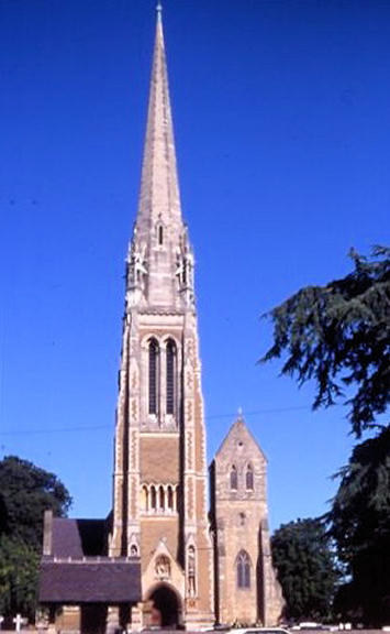 Rugby, Warwickshire Baptist Church. SP 504 754. © Paul Brown. Link. Christadelphian Hall. SP 500 754. © Paul Brown. Christian Fellowship Centre (Elim Pentecostal) on Cambridge Street. It looks as if it may have been Methodist or Congregational at some point - can you confirm? SP 513 754. © Paul Brown. Link. Howard Richter advises that this was Wesleyan Methodist. The original pre-1887 Mission Chapel was converted to be the Sunday School when the present building was erected on or before 1905, when it shows on a map of that year. A short way along the road, on the opposite side, stands St. John, a Mission from St. Andrew. Probably now closed, a 1954 photo of it is available here. Church of Jesus Christ of Latter-day Saints. SP 500 754. © Paul Brown. Evangelical Free Church. SP 507 753. © Paul Brown. The now-demolished Holy Trinity. Previously in the "Unknown" section, Barney Tyrwhitt-Drake wanted to put a name to the church in an old photo taken by a family member in 1865. Thanks to Phil Draper for the ID. He advises that this was a Scott church, and was demolished in 1983 despite a long campaign for its preservation. It was Grade A listed. An old postcard view, from Chris Kippin's Collection. SP 506 751. Link. Methodist Church. SP 501 749. © Paul Brown. Link. Mount Zion United Pentecostal Church. SP 514 752. © Paul Brown. New Testament Church of God. SP 499 754. © Paul Brown. Orthodox Church of the Ascension. SP 512 751. © Paul Brown. Quakers. SP 504 755. © Paul Brown. Rugby School Chapel (1872, by Butterfield), previously and incorrectly listed as the Grammar School Church. © Paul Brown. An old postcard view, from Reg Dosell's Collection. SP 503 749. Another view, interior, and the altar, all © John Bowdler (2013). Grade I listed. St Andrew. This church is unique as it has two towers each containing a full circle ring of bells. SP 504 752. © Paul Brown. Another view, and an interior view. Both © Aidan McRae Thomson. Another view, © John Bowdler (2013). Link. Grade II* listed. St. George. © Aidan McRae Thomson. Link. St. Marie (R.C.). © Aidan McRae Thomson. Link. St Matthew. SP 501 750. © Paul Brown. Grade II listed. St. Oswald. © Aidan McRae Thomson. St. Peter (1909) at the junction of Clifton Road and St. Peter's Road. SP 514 751. © Chris Kippin. Link. The building page has some photos of the predecessor building, a tin tabernacle (1901). St Philip. SP 502 760. © Paul Brown. Grade II listed. St Peter and St John. SP 515 752. © Paul Brown.
