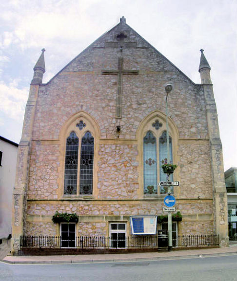 Sidmouth, Devon All Saints on All Saints Road, and its interior. SY 1251 8770. Both © Chris Kippin (2022). Link. Grade II listed, wherein it's dated to the 1830's. Emmanuel Baptist Church on Manstone Lane. SY 1265 8939. © Heath Nickels (2016). The church website advises that the congregation dates from 1932, though the current building is of 1968. The "History" page on the website has a photo of the original church - a converted farm building. Church of the Most Precious Blood (R.C.) on Radway. SY 1256 8780. From an old postcard in Christopher Skottowe's Collection. Two modern views - 1, 2, the interior, and a window, all © Chris Kippin (2022). Link. Methodist Church on Mill Street. SY 1266 8755. © Graeme Harvey. Another view, © Alan Blacklock. Link. The Methodist Church on Church Street, Sidford. © Heath Nickels (2016). Link. Its probable predecessor - a Wesleyan Chapel - stood nearby on Sidford Road at SY 1334 8999. Pre-dating a map of 1889, its site was seen by Streetview in 2008. I've been unable to find a photo. The cemetery off Temple Street has a double Mortuary Chapel. SY 1252 8845. © Chris Kippin (2022). Primley U.R.C. on Primley Road. SY 1287 8915. © Heath Nickels (2016). Link. The Quaker Meeting on Coburg Road. SY 1242 8742. © Chris Kippin (2023). Link. St. Francis of Assisi at Woolbrook. Another view. SY 1218 8909. Both © Chris Kippin (2022). Link. St. Nicholas. SY 1256 8737. From an old postcard in Steve Bulman's Collection. The church is now known as St. Giles and St. Nicholas. Two more old views - 1, 2, both from Christopher Skottowe's Collection, dateable to 1938. A modern view, © Graeme Harvey. Link. Grade II* listed. St. Peter at Sidford, and its interior. SY 1365 9001. Both © Chris Kippin (2022). Link. U.R.C. on Chapel Street (1850) is marked as Congregational on older O.S. maps. SY 1255 8728. © Graeme Harvey. A news item from 2017 shows that the church is now "former", and has perhaps been superseded by the Primley U.R.C. (above). It includes an interior photo. The former Unitarian Chapel, on High Street and All Saints Road. Two views of the interior - 1, 2. SY 1260 8767. All © Chris Kippin (2023). Link. Grade II listed, which dates it as a "very largely mid to late C19" re-build, of a chapel originally of 1710. A mid-20th century map shows a place of worship set back midway between High Street and Heydons Lane at SY 1260 8762. I haven't discovered what it was, and the site isn't visible to Streetview. However, the Old Chancel stands here, and is a curiosity. A blue plaque explains that it was cobbled together from "reclaimed materials" from several churches, as a house. This may be what is shown (wrongly) on the map. © Chris Kippin (2023).