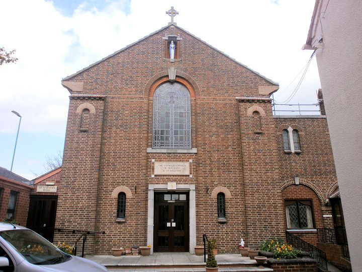 Southam, Warwickshire Southam, dedicated to St. James. SP 417 618. © Steve Bulman. Grade I listed.The converted Primitive Methodist Chapel (1853 - date-stone) on Pendicke Street. SP 419 616. Both © Howard Richter (2015). Link, which says that the chapel closed in the 1950's. Congregational Chapel. SP 419 619. Two additional views - 1, 2. All © Howard Richter (2015). Link, wherein one learns that it dates from 1839, and that it was successor to an Independent Chapel. Grade II listed. Our Lady and St. Wulstan (R.C., built 1925, consecrated 1956). Another view. SP 420 619. Both © Howard Richter (2015). Link. The history page mentions four other R.C. chapels - from 1876 a small chapel in the first convent, now known as the Olde House. Only two years later, a tin tabernacle was transferred from Cardiff, and which was replaced in 1898 by another one, this time transferred from Birmingham. It was this chapel which was superseded by the present church. A new convent and orphanage had been built in 1902, and in 1972 another chapel was converted from a room in the convent. Link, which shows the present church along an alley, the right side of which is formed by the Olde House. Behind this is the 1902 building; this was demolished in the 1980's - see here, which has more history.
