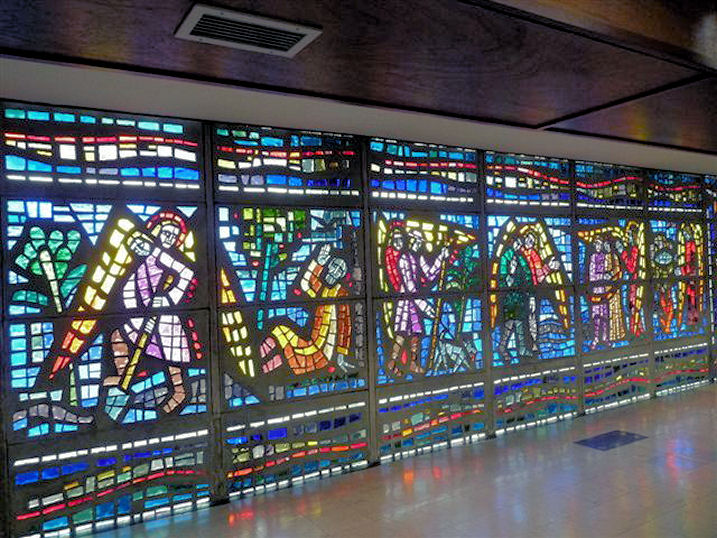 Holy Trinity and Christ Church on Market Street. SJ 963 986. © June Fitzgerald. Another view. © Mike Berrell (2010). Three interior views - 1, 2, 3, all © Mike Berrell (2013). Grade II listed. Millbrook Methodist Church, formerly Wesleyan Methodist Chapel, on Chapelfold Close and Fitzroy Street. SJ 979 995. © Mike Berrell. A 2011 Streetview shows that the building was for sale at that time. Another view. The vanished Mount Tabor Methodist New Connexion Chapel stood on Besom Lane, Millbrook. This old photo shows a group preparing for a march or celebration, carrying a banner with an image of either the Sunday School or church, probably the latter. From Mike Berrell's Collection. According to this website, the chapel was founded in 1882, but the date of closure and demolition are not known at present. They also give the location as being at grid ref. SJ 980 995. Howard Richter has been able to find a few scant details about the church - a document of 1940 refers to it as "United", so presumably United Methodist. By the time of a 1965 O.S. map, it was serving as the Sunday School for Millbrook Methodist Church. A modern Streetview of the site. Revival Church (Pentecostal) on Huddersfield Road, Millbrook. SD 9809 0004. © Mike Berrell (2014). Howard Richter has advised that the church is now known as Revive Church. Link. St. George (CoE) on Church Walk; consecrated in 1840. SJ 962 989. © Mike Berrell. Two interior views - 1, 2, both © Mike Berrell (2013). Link. A photo of Old St. George's Church (1888 - 1967) at Cocker Hill hangs in the present church. SJ 965 987. Reproduced by kind permission of the church; photo © Mike Berrell (2013). Despite being known as Old St. George's, two buildings preceded it; the original was built in 1776 and fell down only two years later. This was succeeded a few years afterwards by the second, which suffered from the effects of nearby tunnelling and railway building, when a landslip made it unsafe. More history here. Grade II listed. St. James (CoE) on Huddersfield Road, Millbrook. SJ 9810 9985. © Mike Berrell. Two interior views - 1, 2, both © Mike Berrell (2010). Another view, © Philip Kapp. Link. Grade II listed. St. Matthew on Dean Street. SJ 964 985. It wasn't built as a church, as this plaque explains, and it was re-named as St. Matthew after a former church which used to stand on Lord Street. Both © Mike Berrell (2013). St. Paul on Huddersfield Road. SJ 9717 9872. © June Fitzgerald. Another view. © Mike Berrell. Two interior views - 1, 2, both © Mike Berrell (2011). Grade II listed. St. Peter (R.C.) on Castle Hall Close. SJ 965 981. © Mike Berrell. Two interior views - 1, 2, both © Mike Berrell (2011). St. Raphael the Archangel (R.C., 1963) on Huddersfield Road, Millbrook. SD 9814 0004. © Mike Berrell. Three interior views - 1, 2, 3, Christ carrying the cross, some striking modern stained glass, and an equally striking modern font, all © Mike Berrell (2011). Another view, © Philip Kapp. Mike advises that this closed in 2011 (news story), and that there were moves to demolish it (news story), but the grade II listing, which only happened in 2011, prevented its demolition. Following the closure, the Parish Hall was used for services, though Mike's impression was that it was perhaps no longer in use as it seemed somewhat uncared for. © Mike Berrell (2014). Howard Richter has advised that the church was offered for sale in 2017 (news story) and that it remains so in 2019. Former Salvation Army Hall on West Street, now a dentist's. SJ 958 988. © Rob Brettle. By 2013 when Mike visited, it had been converted to residential use. © Mike Berrell (2013). Stalybridge Congregational Church on Baker Street. The foundation stone was laid in 1999. Two interior views - 1, 2, and the fine war memorial. SJ 967 984. All © Mike Berrell (2013). Link. Stalybridge Methodist Church, on High Street. SJ 960 982. © Mike Berrell. Interior view, © Mike Berrell (2013). Stalybridge Unitarian Church on Forester Drive. SJ 965 981. © Mike Berrell. Two interior views - 1, 2, both © Anne Smith (2012).
