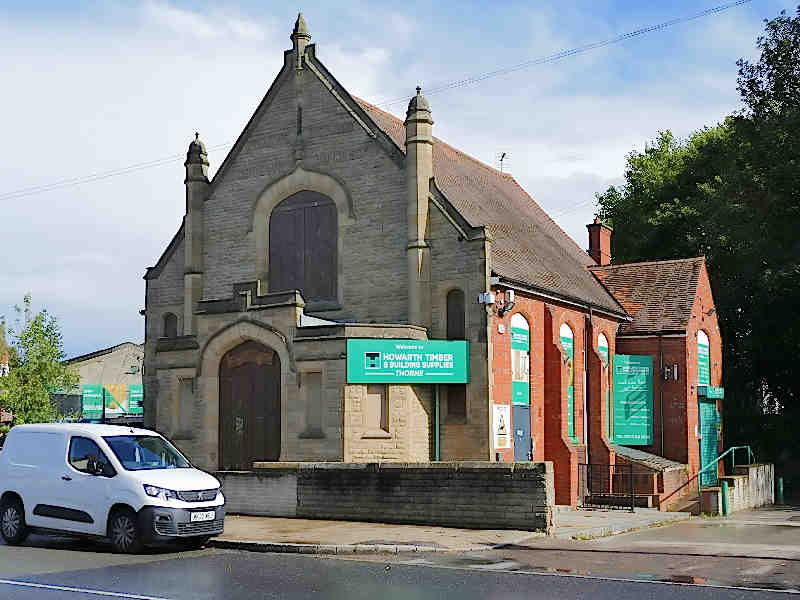 Thorne, South Yorkshire The Church Hall, set well back from Church Street and Stonegate, is a former Congregational Chapel. So named on a map of 1892, one of 1906 labels it as Mission Ch. It was still in active use (U.R.C.?) in the mid-20th century. SE 6894 1321. © David Regan (2025). An earlier Congregational Chapel stood on Orchard Street (its site at now lies under the road and adjacent grassed area). It had previously been Unitarian (pre-dating a map of 1853). It went out of use in the mid-20th century. SE 6864 1320. © David Regan (2025). A Friends Meeting House is shown on some O.S. maps, set well back from Church Street behind other buildings. Aerial views suggest it hasn't survived, and the building or its site can't be seen on Streetview. I haven't been able to find a photo of it either. Kingdom Hall of Jehovah's Witnesses, on Grange Road and Northgate, Moorends, as seen by Streetview in 2023. SE 6964 1574. The Methodist Church on King Street. It has a date-stone declaring itself to be Wesley Chapel 1826. SE 6871 1337. © James Murray. Link. Moorends Spiritualist Church on Newholme Drive, Moorends, as seen by Streetview in 2023. SE 6941 1539. Facebook. The cemetery on Southfield Road has a Mortuary Chapel (2023 Streetview). SE 6914 1294. Genuki includes an entry for "the former Pentecostal Church". This survives on Church Street, and was seen by Streetview in 2023. Close examination of the inscription below the left window reveals it to say "Travis's Charity School", and all available maps also show it to have only been a school. Can you confirm whether this was indeed also a church at some point? Primitive Methodist Centenary Church (1907) on South Parade. SE 6878 1306. © James Murray. Another view, © David Regan (2025). This source dates its closure to 1970, and says there had been a predecessor of 1822. It also acknowledges that there is some mystery here, with a possible third chapel, and doubt about the earlier date. On a map of 1853, and almost across the road from the site of the 1907 chapel, is a side road named Providence Row (now Horse Fair Green) - could one of these earlier chapels have stood here? It's also interesting to note that the 1906 map marks a building directly across the road from the junction of Horse Fair Green and South Parade as Chapel. It may survive in secular use - 2023 Streetview. What was it? SE 6880 1309. St. Joseph and St. Nicholas (R.C.) on Bloomhill Road, as seen by Streetview in 2023. SE 6926 1522. Link. St. Nicholas on Church Street. SE 6896 1327. © Bill Henderson. Two more views - 1, 2, three of the interior - 1, 2, 3, and the font, all © David Regan (2025). Link. Grade I listed. See here for related listed features. St. Wilfrith (2023 Streetview) is on West Road at Moorends. SE 6953 1542. Link. Standing outside the village at SE 7175 1063 is the former Salem Methodist Chapel. The 1853-5 and 1893 maps shows it as Methodist New Connexion, and as "Methodist Ch" on the 1962 edition. The date-stones for 1833 and 1851. © Howard Richter (2017). The former United Methodist Chapel (Bethesda) on King Street is dated 1893, and now converted into flats - The Old Chapel. SE 6864 1336. © James Murray. Another view, © David Regan (2025). Older O.S. maps show a Wesleyan Methodist Chapel on Moorends Road at SE 6925 1645. Pre-dating a map of 1853, it seems to have been enlarged or re-built before 1904, but had gone out of use before 1951. Demolished, its site was seen by Streetview in 2023. Mid-20th century maps mark a place of worship on Northgate and Garden Road, Moorends, at SE 6965 1568, just a little way south of the later Kingdom Hall (see above). Evidently converted from the church, Moorends Community Centre now occupies the site. 2023 Streetview. Can you advise what it was?