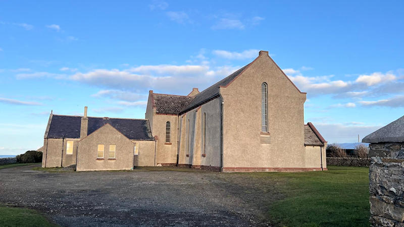 A Church of Scotland Mission Hall used to stand a little way east of Whitehall village at HY 6620 2829. It pre-dated a map of 1902, and this source (scroll down) says that it was badly damaged or destroyed in a storm in 1936, and a new chapel was rapidly put in place "on the same site but further away from the public road". It survives, and after several changes of use, plans are afoot to redevelop it as a Heritage Centre. Streetview saw it in 2022. The site of its predecessor is indicated by the grassed area plus driveway). Moncur Memorial Church. HY 6542 2514. © Richard Beghin (2025). This source, which dates it to 1955, possibly incorrectly says that it's now the only church on the island - see Our Lady, below. Link. Category C listed. Older O.S. maps show a United Presbyterian Church (later United Free) on the same site. A newspaper article dates it to 1858, and includes photos of it during its demolition. More history from the same series of newspaper articles can be read here (with photos of the U.P. church) and here. Our Lady (R.C.) at Whitehall, as seen by Streetview in 2010. A 2015 photo on Geograph shows it when it still had its signage. Although still apparently active (at least, according to this website), I haven't been able to find any further on-line information about it. It presumably was still active when this 2023 video was taken, showing the exterior and interior. HY 6594 2847. St. John (CoS) stood overlooking Mill Bay at HY 6550 2594. Pre-dating a map of 1882, it was closed (according to a reference already given in the Moncur entry above) in 1931. Some photos can be seen here (scroll down) where it says it now forms part of some farm buildings. Its roof is perhaps visible in a Streetview from 2010, to the left of the telegraph poles. St. Ninian (Episcopal) stood in Whitehall village "between (the) houses of Cedarbank and Glenfield" (source). This puts it at about HY 6599 2829. This church also fell victim to a storm, in 1952. It stood immediately to the left of the house seen in a Streetview from 2010.