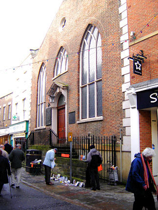 Whitby, North Yorkshire The former Brunswick Methodist Chapel (disused). Built in 1891, it replaced the earlier Skate Lane Chapel (built 1814) on the same site. © Colin Waters. The now demolished Cliff Street Chapel (previously Cliff Lane Chapel), from an old postcard in Colin Waters' Collection. The Congregational Church on Skinner Street (© Colin Waters), dating from the 1860's, is evidently the same building as in this old engraving of West Cliff Congregational Church, from the Colin Waters Collection. Circa NZ 896 110. The former Friends' Meeting House (Quaker), which was sold in 2006. NZ 9004 1107. © Colin Waters. Its grade II listing dates it to 1813, on the site of a predecessor of 1676. Former Methodist Chapel on Cleveland Terrace, originally built as a Primitive Methodist Chapel in 1866. Another view. Both © Colin Waters. Former Methodist Church on Church Street. Has been a private residence, but is now in use as a restaurant. © Colin Waters. The cemetery on Larpool Lane has a double Mortuary Chapel, seen here by Streetview in 2015. Church of England, left, at NZ 9019 0979, Nonconformist, right, at NZ 9019 0977. Grade II listed, wherein it's dated to 1862. St. Hilda at West Cliff. Built between 1884 and 1886 to serve the growing tourist trade, it replaced a corrugated iron church (known as the tin church). NZ 894 112. © Colin Waters. The tin church appears in this old illustration from Colin Waters Collection. Another modern view, © Bill Henderson (2013). Grade II* listed St. Hilda (R.C.) on Brunswick Street was built in 1867 to replace a Roman Catholic Meeting Hall (built 1805). The spire is of fibre glass, and was put up to replace a stone one in 1990. The original was causing structural damage to the rest of the building. © Colin Waters. Two interior views - 1, 2, both © Mike Forbester. Grade II listed. St. John the Evangelist, © Colin Waters. Interior view, © Mike Forbester. Grade II listed. St. Mary. NZ 9016 1129. From an old postcard in Steve Bulman's Collection. A modern view, © Bill Henderson. Interior view, © Colin Waters. The following are © John Bowdler - another view, showing the sun-dial, two interior views - 1, 2 - and the font. Another view, and the pulpit and tester, both © Dennis Harper (2010). Link. Grade I listed. The long-gone St. Michael stood on what is now the Church Street car park. Colin advises that illustrations of this church are rare. In the image St. Michael stands just behind the boat in the harbour. Also visible in this 19th century print are St. Mary (top-middle) and the Abbey (top-right). From the Colin Waters' Collection. A sketch by Colin shows it in greater detail. © Colin Waters' Collection. St. Ninian's Church, formerly St. Ninian's Proprietory Chapel on Baxtergate. Colin explains "It is a privately owned (but public) 'high church' with many of its congregation being share-holders." © Colin Waters. Three interior views - 1, 2, 3, all © Mike Forbester. Grade II* listed. Old St. Ninian's Chapel also stood on Baxtergate. The illustration on this old handbill show the building as it was when used as a wine vaults. The site is currently occupied by the HSBC bank. From the Colin Waters' Collection. The former St. Patrick (R.C.), on Church Street, which has recently been decommissioned and put up for sale. The only indication of a church is the panel above the door, in an otherwise normal Georgian House. Grade II listed. Former Salvation Army Hall. The building has a new frontage and is a chip shop. © Rob Brettle. The former The Missions to Seamen on Haggersgate has/had a chapel on the first floor. Now known as Whitby Mission and Seafarers Centre, this source says that "prayer events" are still held here. It can be seen on a Streetview from 2018. NZ 8984 1112. Trinity Reformed Church (formerly Presbyterian), on Flowergate. © Colin Waters. Unitarian Chapel (formerly Presbyterian) on Flowergate. This chapel, which dates from 1676, has no frontage on any street, other than this doorway. NZ 8986 1104. © Colin Waters. Grade II listed. The former Wesley Hall, © Bill Henderson (2018). Another view, © Tom Halstead. Ken Roddam has advised in 2025 that the church has been granted planning permission to convert to commercial use as a bar and cafe. Whitby Abbey. Another view. NZ 9031 1122. Both © David Nicholson. Another view, © Bill Henderson. An old engraving in Colin Waters' Collection, showing the Abbey before the tower fell (1700's). Three further views - 1, 2, 3, all © John Bowdler, and another, © Christopher Skottowe (1961). Link. Grade I listed. Other listed features associated with the Abbey can be found here. Whitby Evangelical Church on Skinner Street. Approx NZ 896 110. © Steve Taylor. Link.